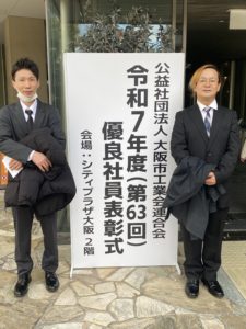 大阪市工業会連合会の優良社員表彰式に参加させて頂きました。